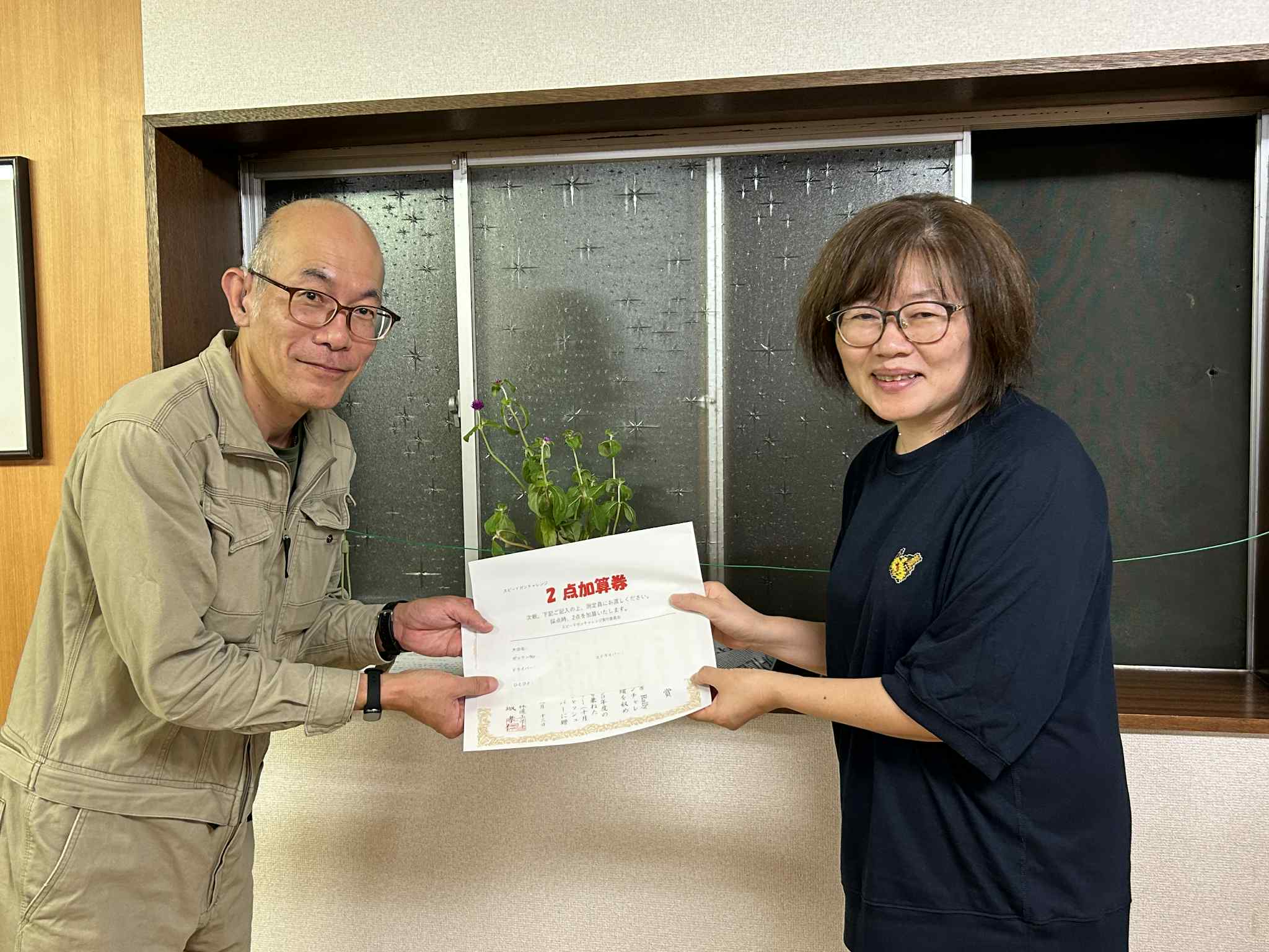 ワイロに弱いのはもちろん、怪しいクーポン券も配ってる大西さん・・(^^; ワイロと引き換えに八子ケ峰ラリーのクーポン券を貰えるかも・・知らんけど(^^;