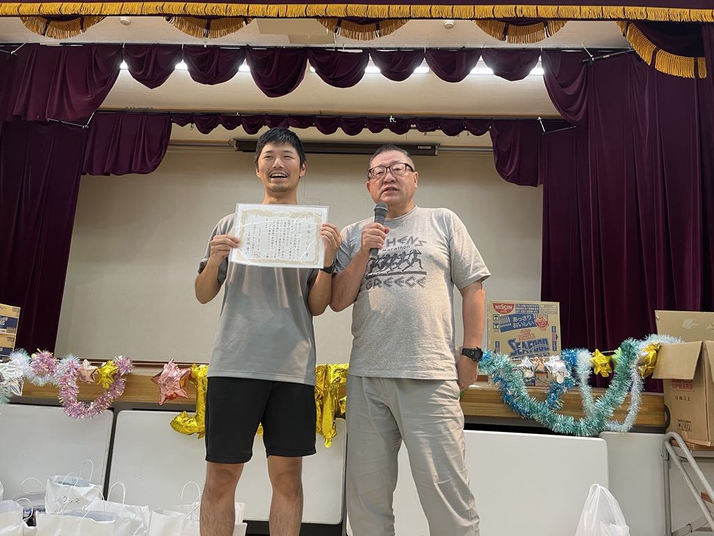 まずはじめに、選手、オフィシャル、お友達の皆さんからご支援協賛品を本当にたくさん頂けまして、表彰式も盛大に盛上がったことをを改めてこの場で報告させていただきます。ありがとうございました。