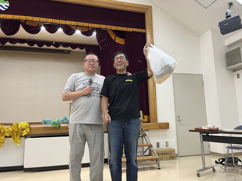 今回もたくさんの協賛品ありがとうございました。大西さん(左)と群馬山の伊東コマンダー(右)も喜んでいます
