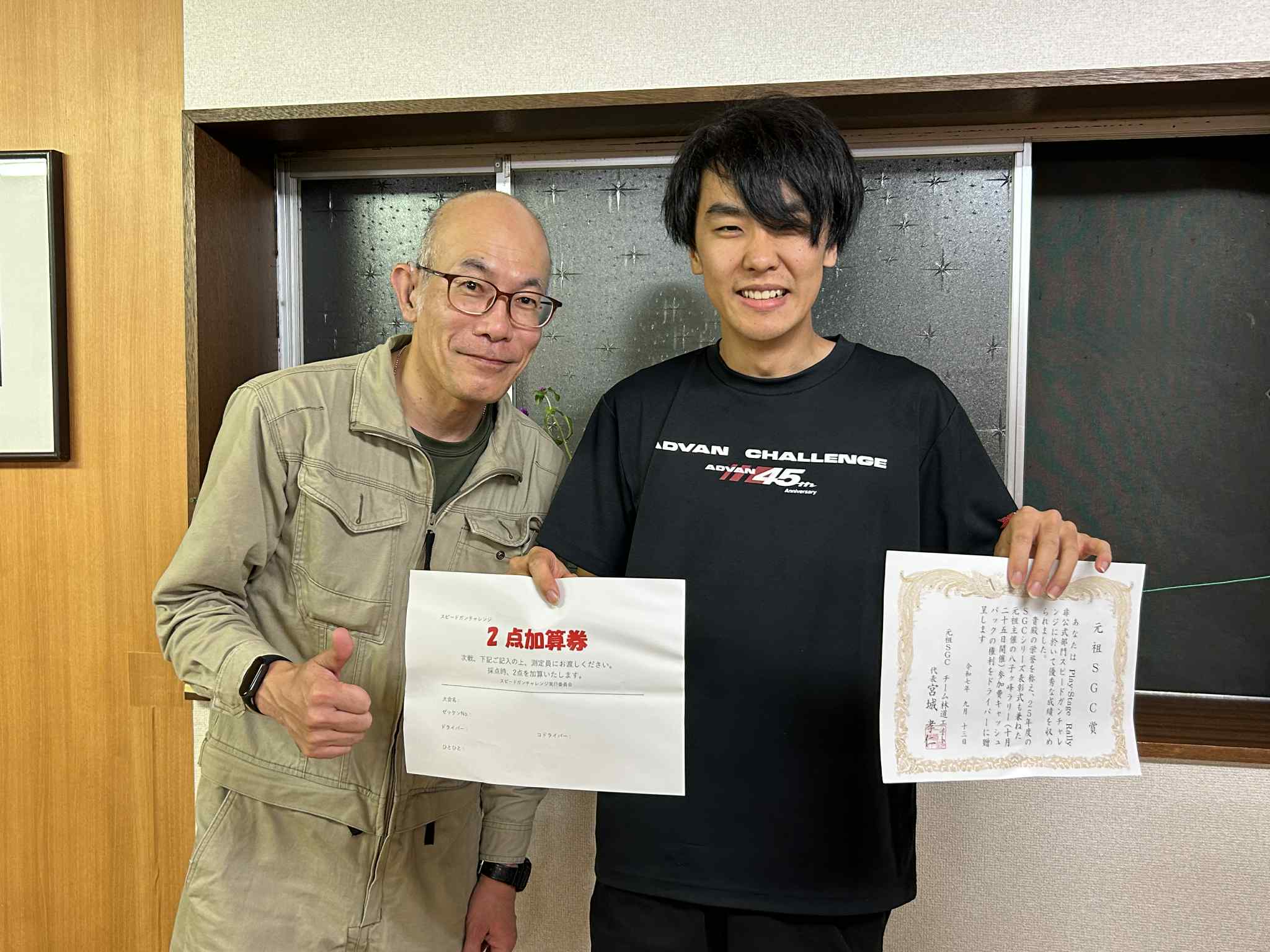 安全運転賞は、西村選手だったのですが、たまたま不在のためBURA・KAZU組。 来年もぜ来てください(^^;